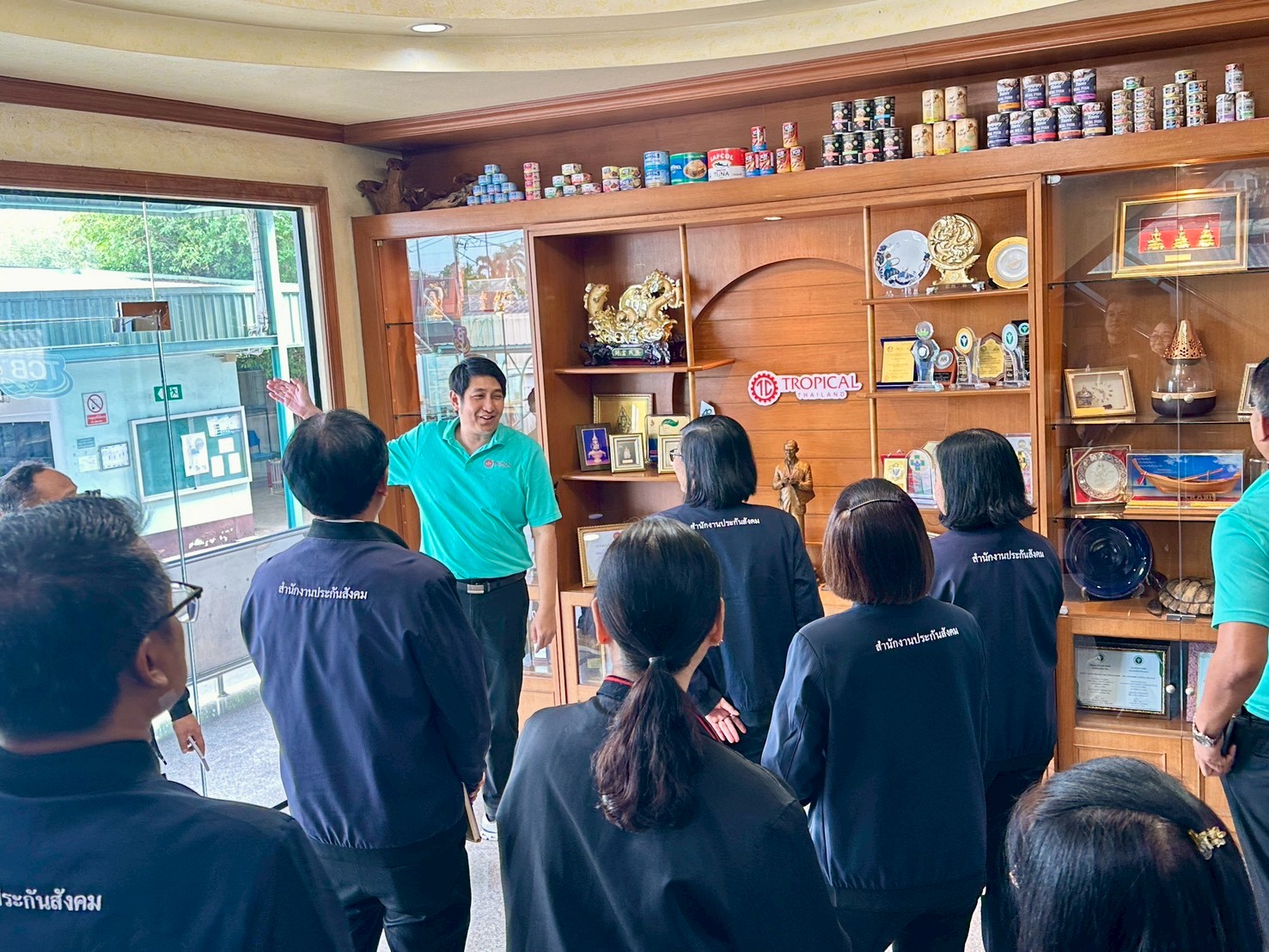 เมื่อวันที่ 3 ธันวาคม พ.ศ. 2568 คุณชยฉัตร ยศสุนทร ผู้จัดการอาวุโสส่วนงานทรัพยากรบุคคลและเลขานุการบริษัท พร้อมด้วยคณะผู้บริหารส่วนงานทรัพยากรบุคคล ให้การต้อนรับ ท่านกาญจนา พลูแก้ว เลขาธิการสำนักงานประกันสังคม พร้อมด้วย ท่านปฐพี จิระวรรณ ประกันสังคมจังหวัดสงขลา ท่านผู้อำนวยการสำนักงานประกันสังคมสาขาหาดใหญ่ และคณะเจ้าหน้าที่สำนักงานประกันสังคม ในโอกาสเข้าเยี่ยมเยียนบริษัท และชี้แจงแนวทางการให้ความช่วยเหลือแก่พนักงานในสิทธิประโยชน์จากเหตุสุดวิสัย ตลอดจนให้ข้อมูลเกี่ยวกับสิทธิประโยชน์ต่าง ๆ ของสำนักงานประกันสังคม